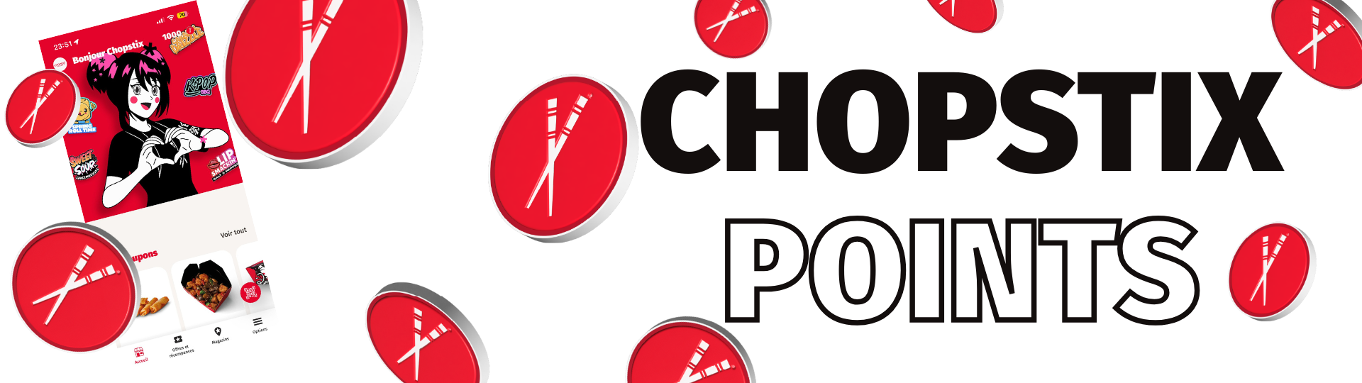 Earn 10 Chopstix Points for every €1 spent and turn your cravings into irresistible rewards, available in the Chopstix app and on our website.